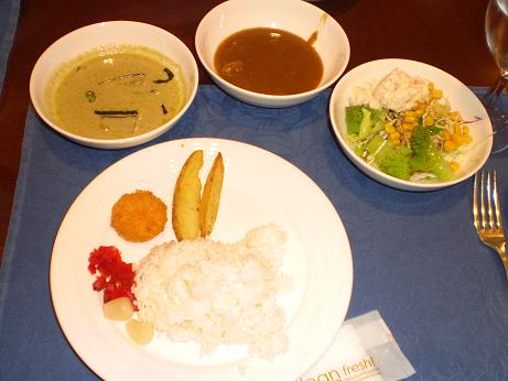 なんてことを考えつつ、まずはタヒチカレーとタイカレー、あとはご飯とサラダを持ってテーブルへ。