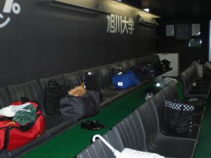 ドーム到着後、さっそく普段なら入れない場所からグラウンドに入りベンチへ。
