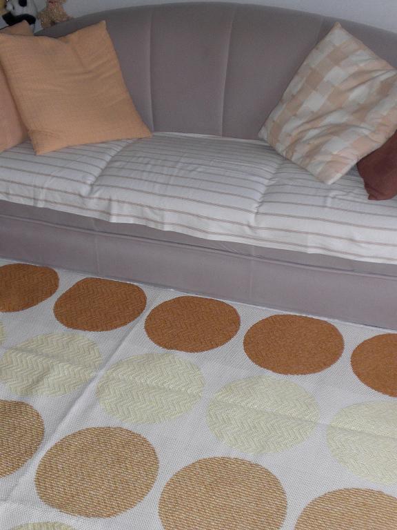 いつもは無地のラグマットを敷いていたのだけど、今回は初めて柄物。