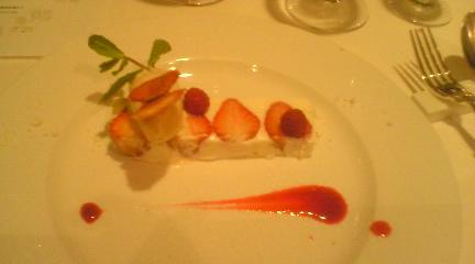 お口直しのソルベは山ワサビ。鼻にツーンとくる感じは確かにわさびなんだけど、レモンの味がしてサッパリ。