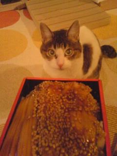 と嗅がせてあげたところ、一度は『う~ん、パス』という顔で引っ込んだクセに、私が食べていると再び寄って来て『やっぱり食べるぅー、魚でしょ?』と猛アピール!